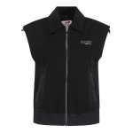 여성 로고 자카드 후드 집업 베스트