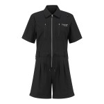 여성 백 슬릿 반팔 집업 점프수트