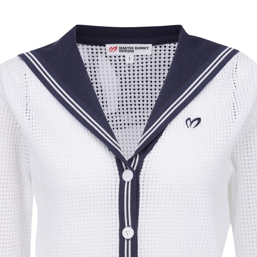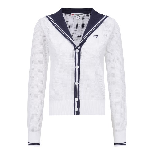 여성 심볼 자수 세일러 칼라 메쉬 가디건
