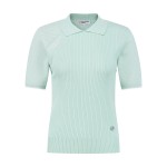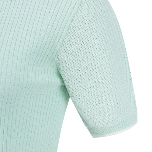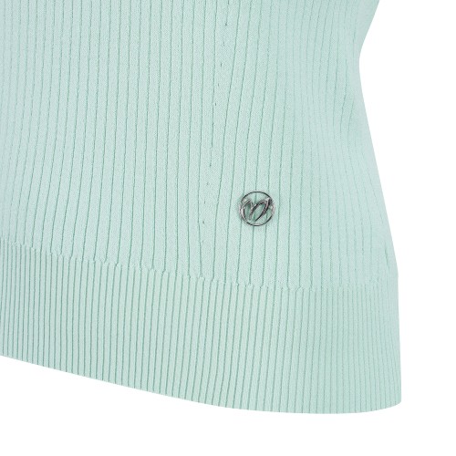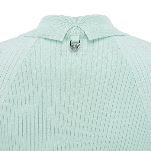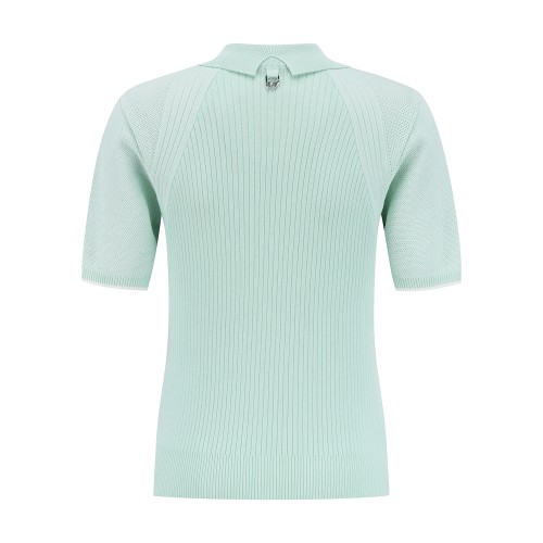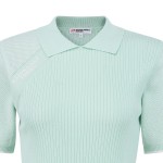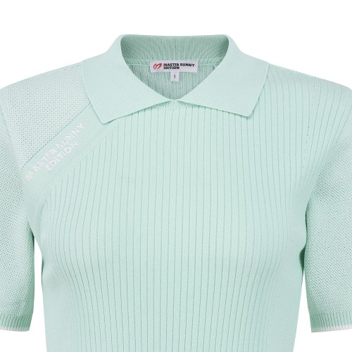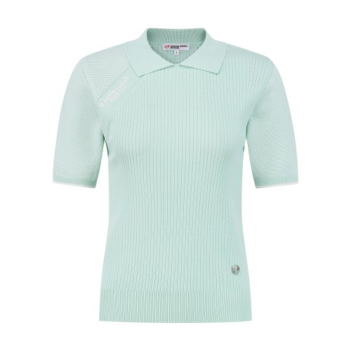 여성 타공 심볼 우븐 믹스 칼라 반팔 니트