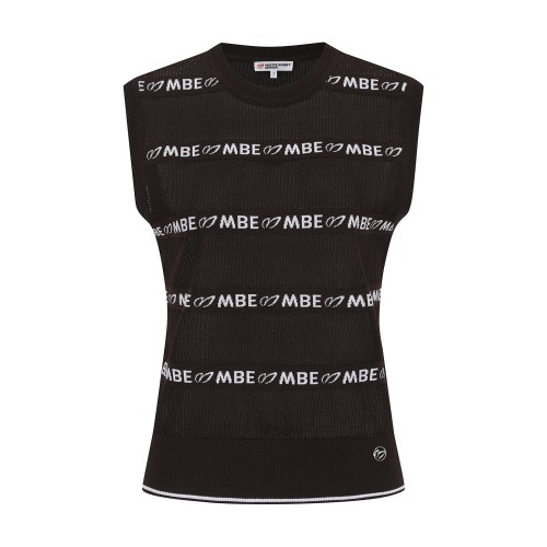 여성 로고 스트라이프 메쉬 니트 베스트