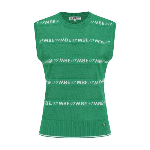 여성 로고 스트라이프 메쉬 니트 베스트
