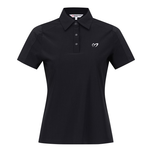 여성 로고 헴 칼라 반팔 티셔츠