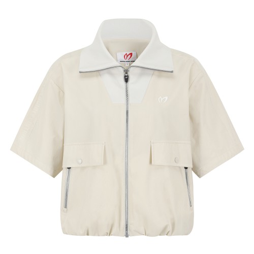 여성 니트 하이넥 반팔 방풍 점퍼