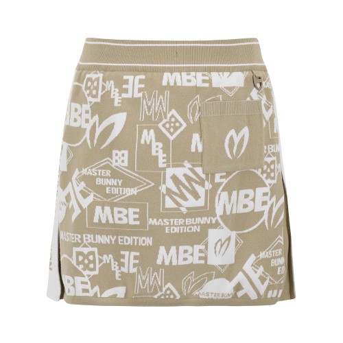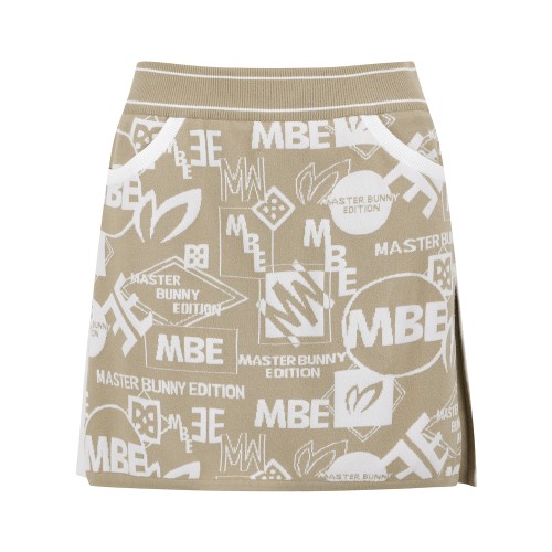 여성 배색 로고 패턴 니트 큐롯 스커트