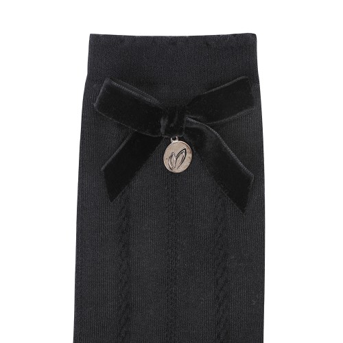 여성 심볼 벨벳 리본 논슬립 중목 양말