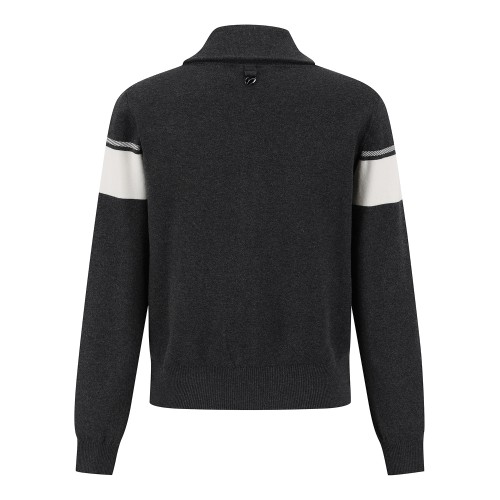 여성 배색 로고 하이넥 집업 가디건