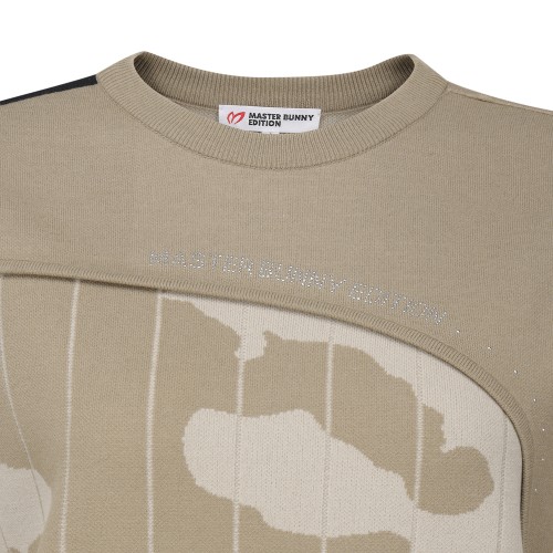 여성 로고 핫픽스 카모 블록 니트