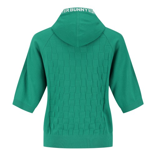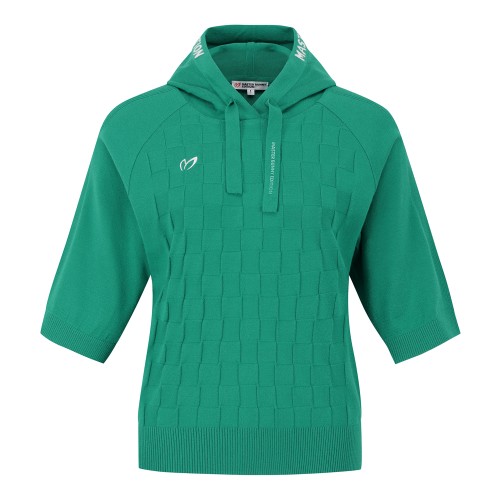여성 체커보드 후드 반팔 니트