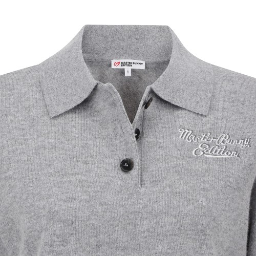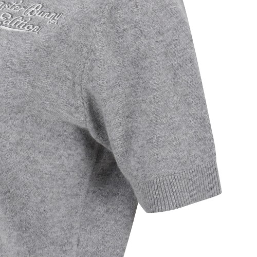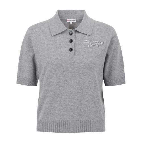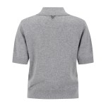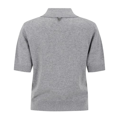 여성 로고 자수 캐시미어 카라 반팔 니트