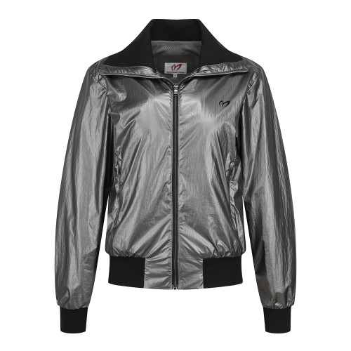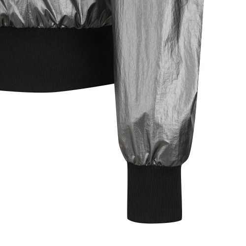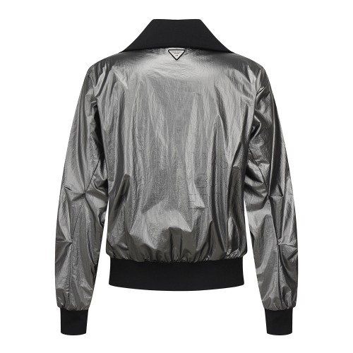 여성 글로시 리브 카라 집업 점퍼