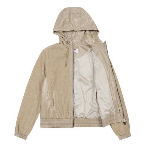 여성 자수 부클 믹스 패딩 후드 점퍼