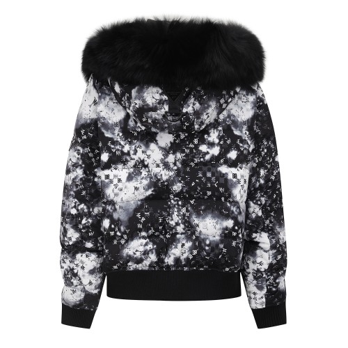 여성 셔링 슬리브 구스다운 퍼 후드 점퍼