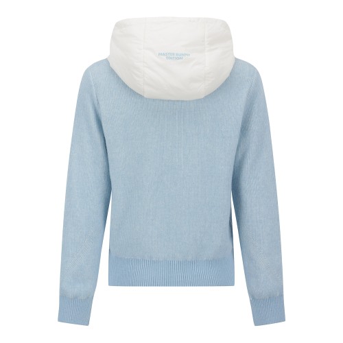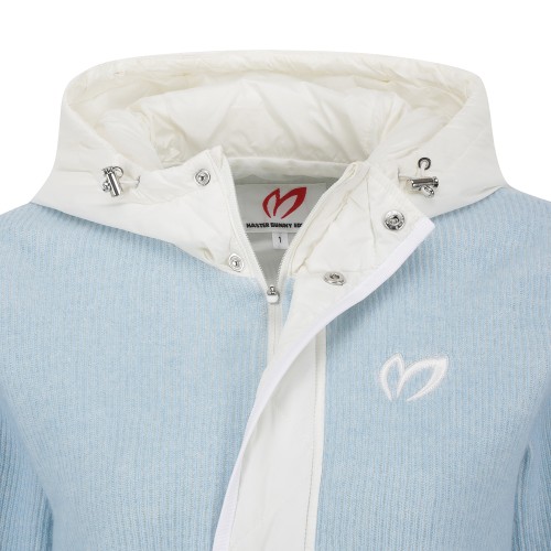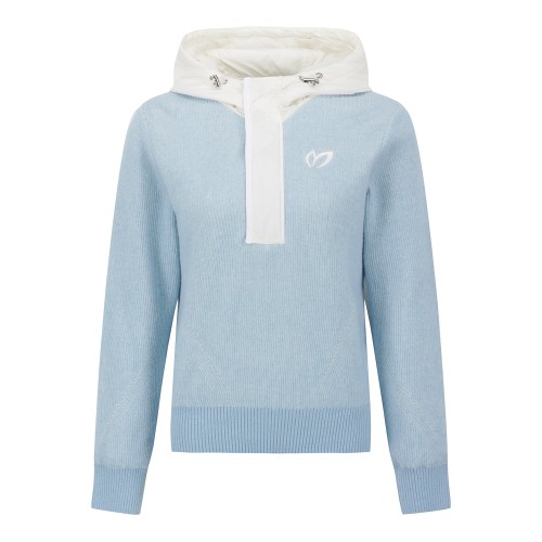 여성 하프 집업 패딩 블록 후드 긴팔 니트