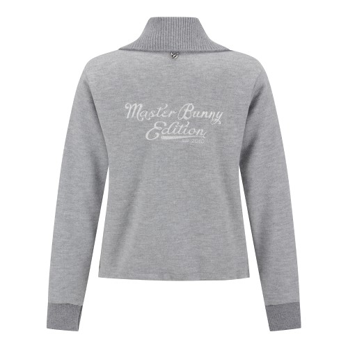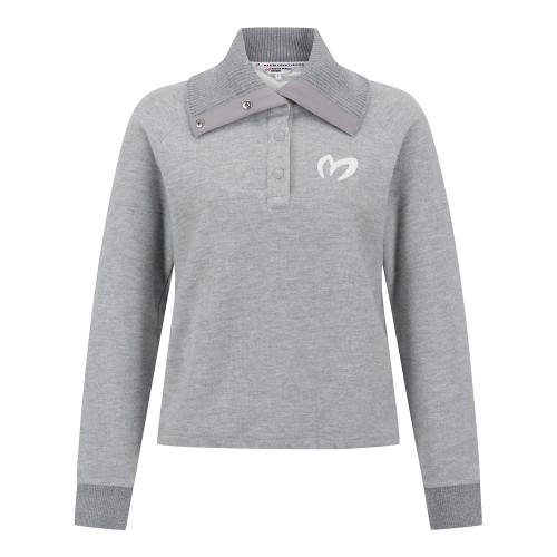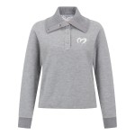 여성 플로킹 심볼 투톤 카라 긴팔 니트