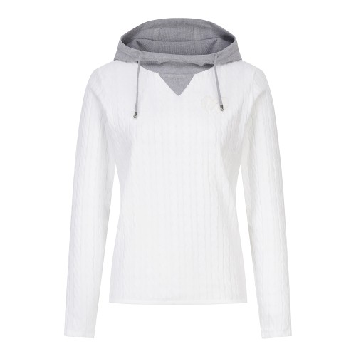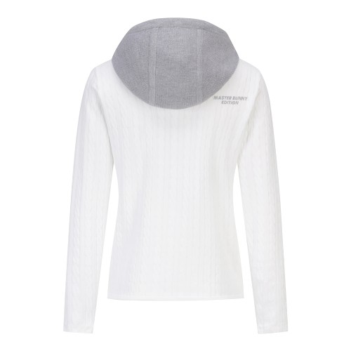 여성 부클 심볼 후드 케이블 긴팔 니트
