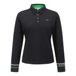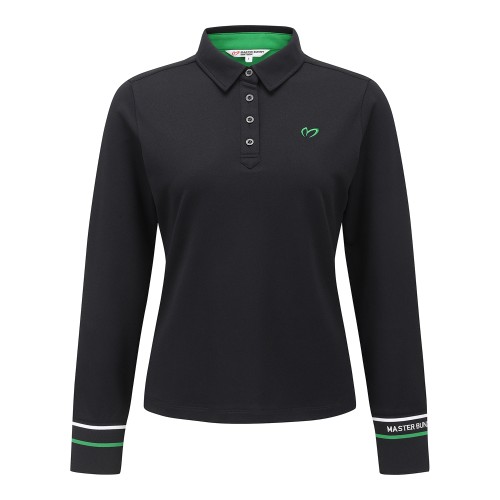 여성 배색 자수 커프스 피케 긴팔티셔츠