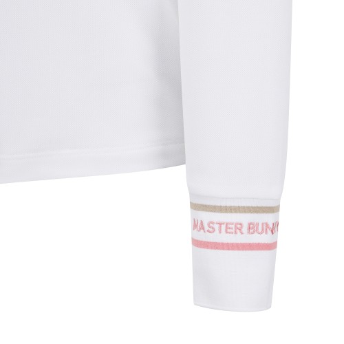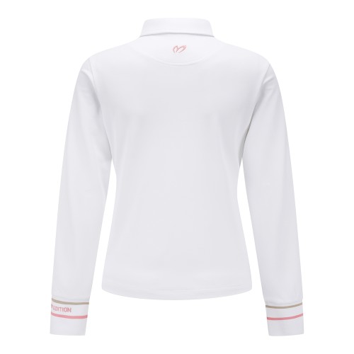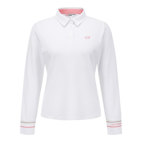 여성 배색 자수 커프스 피케 긴팔티셔츠