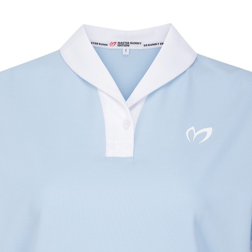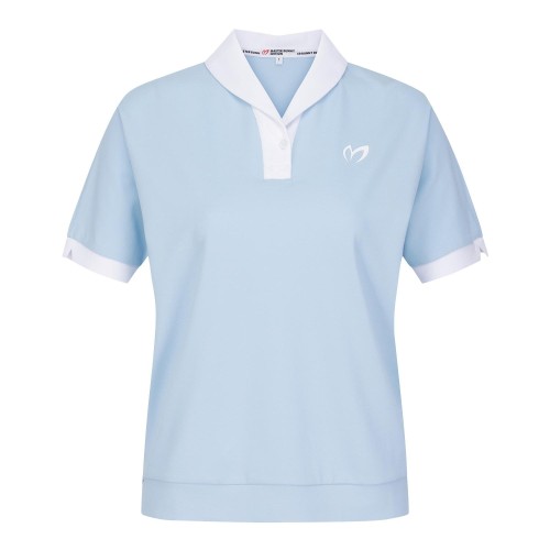 여성 심볼 배색 숄 칼라 반팔 티셔츠