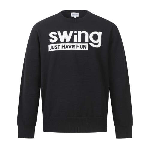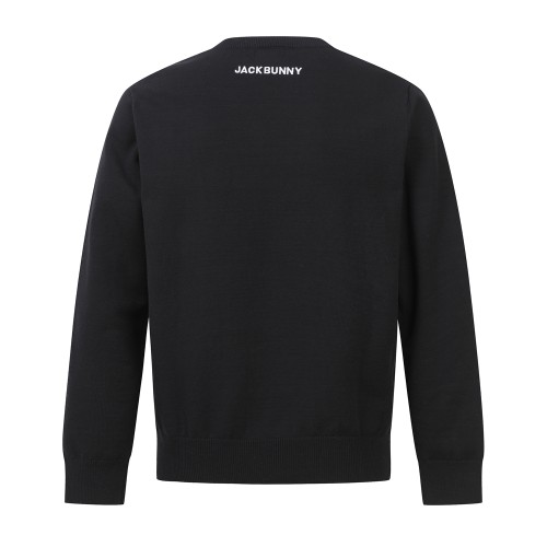 남성 배색 레터링 자카드 라운드넥 스웨터