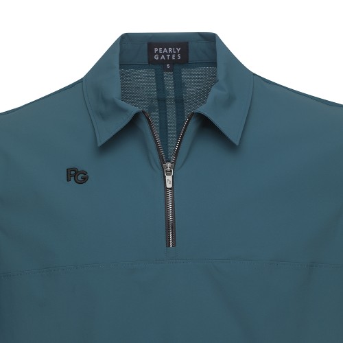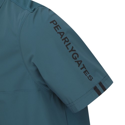[냉감]남성 백 매쉬 하프 집업 카라 반팔 티셔츠