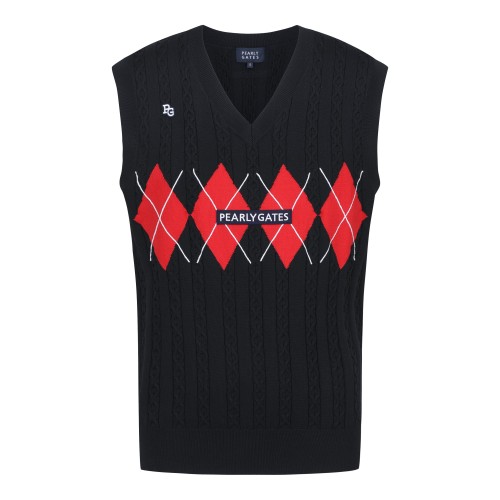 남성 배색 아가일 자카드 로프 니트 베스트