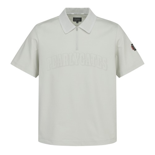 남성 레터링 로고 하프 집업 반팔 티셔츠
