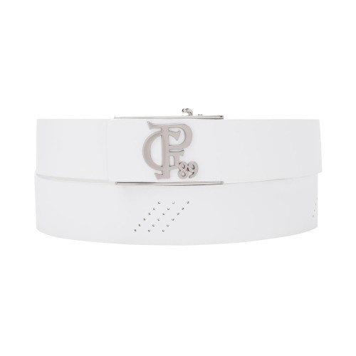 남성 사선 타공 메탈 로고 벨트