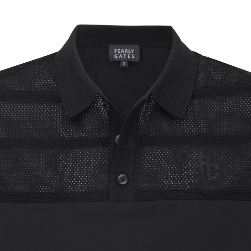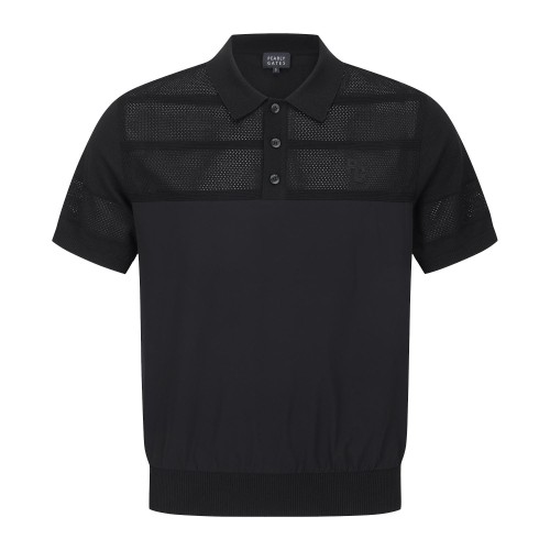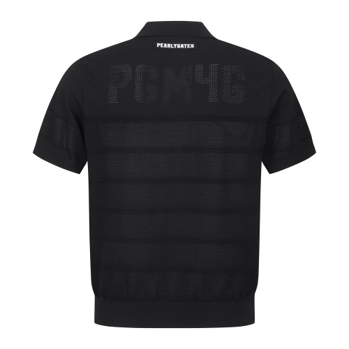 남성 타공 니팅 우븐 블록 칼라 냉감 반팔 스웨터