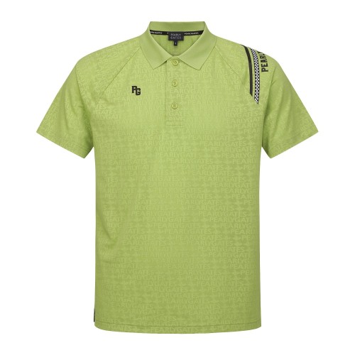 남성 체커보드 레터링 패턴 칼라 반팔 티셔츠