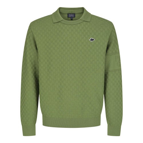 [가격 인하] 남성 체크 패턴 칼라 긴팔 니트