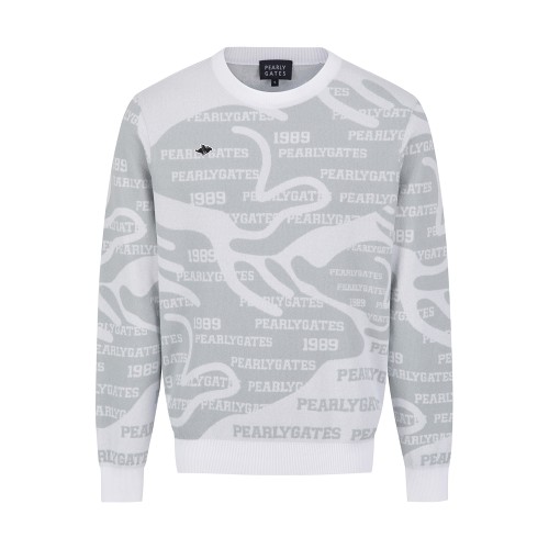 남성 로고 패턴 라운드 긴팔 니트