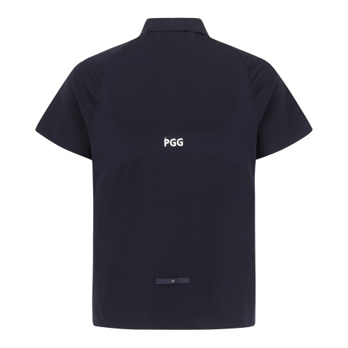 남성 백 로고 스트라이프 조직감 반팔 스웨터
