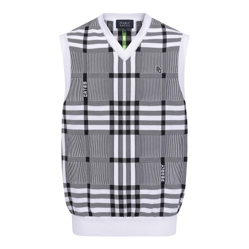 남성 체크 패턴 V넥 니트 베스트