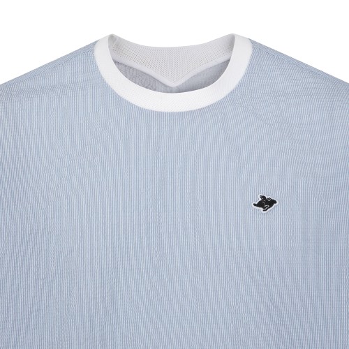 남성 시어서커 스트라이프 스트링 반팔 티셔츠