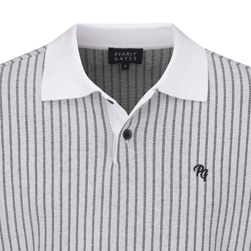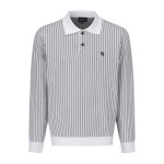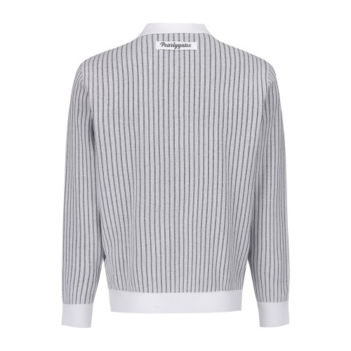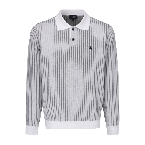 남성 스트라이프 하프 버튼 긴팔 니트