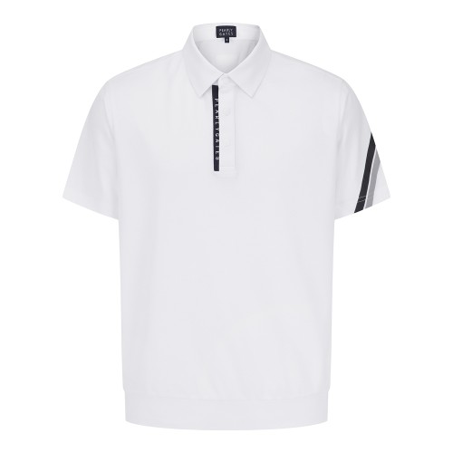 남성 로고 테이프 하프 버튼 반팔 티셔츠