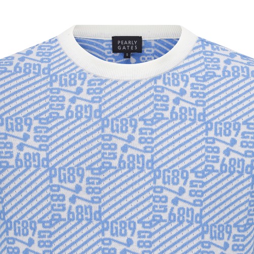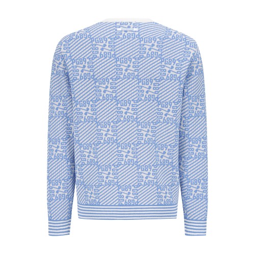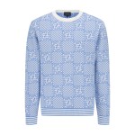 남성 로고 자카드 블록 체크 긴팔 니트