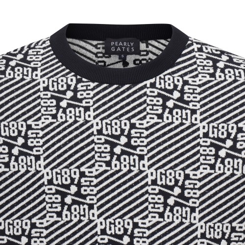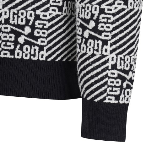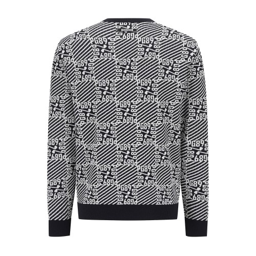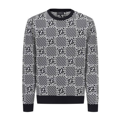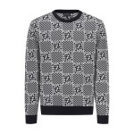 남성 로고 자카드 블록 체크 긴팔 니트