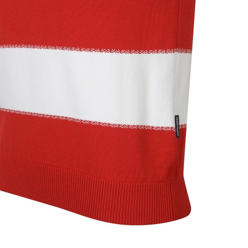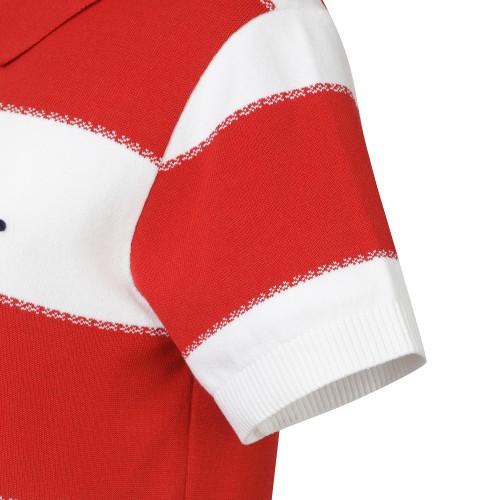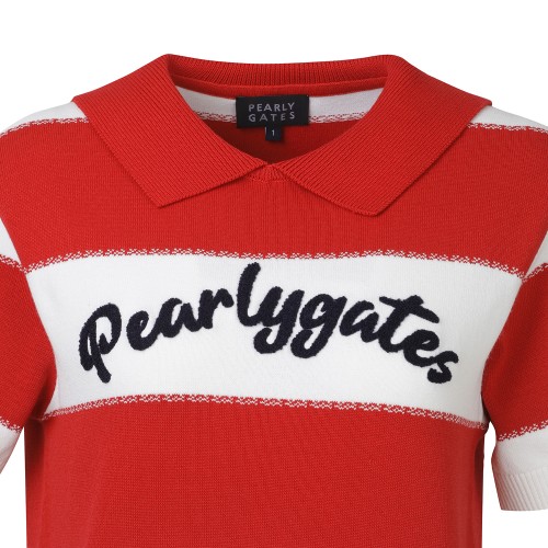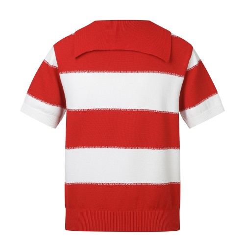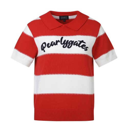 여성 텍스쳐 배색 부클 로고 반팔 칼라 스웨터
