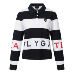 여성 스트라이프 로고 칼라 티셔츠