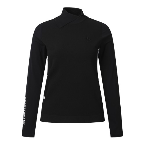 [냉감]여성 배색 슬리브 니팅 칼라넥 터틀넥 티셔츠