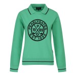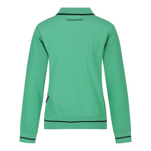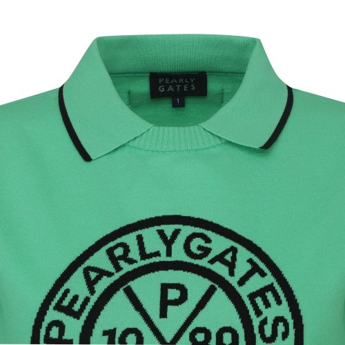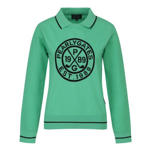 여성 메쉬 슬리브 로고 칼라 니트
