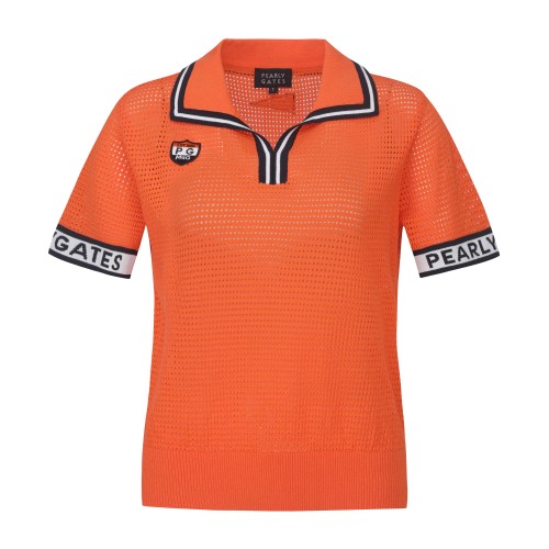 여성 로고 커프스 오픈 칼라 펀칭 니트
