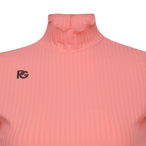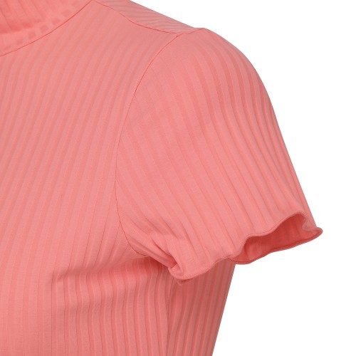 여성 프릴 하이넥 골조직 반팔 티셔츠