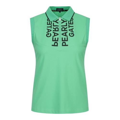 여성 로고 하프 집업 슬리브리스 칼라 탑