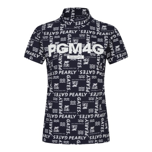 여성 로고 패턴 모크넥 반팔 티셔츠