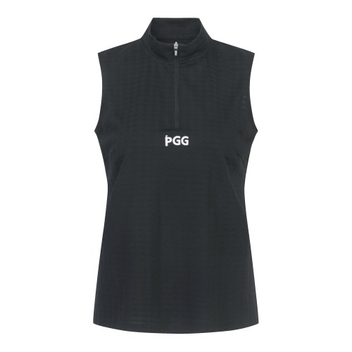 여성 체크 슬리브리스 하프 집업 티셔츠