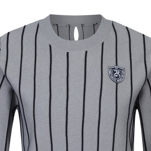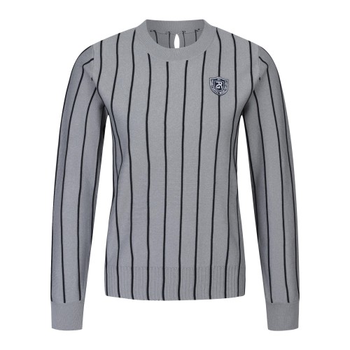 여성 스트라이프 엠블럼 뱃지 크롭 스웨터