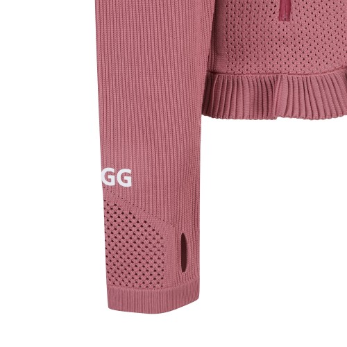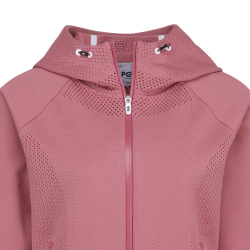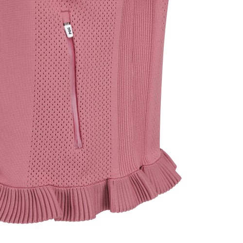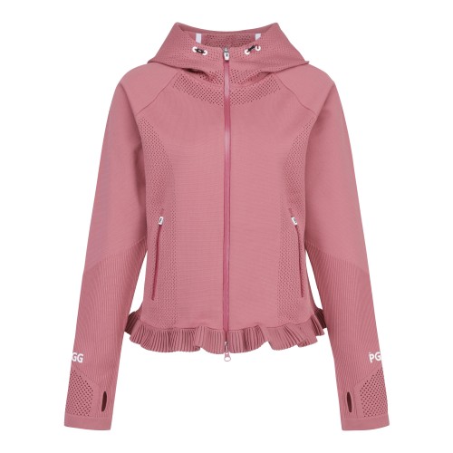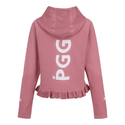 PGG 여성 펀칭 우븐 믹스 프릴 집업 스웨터